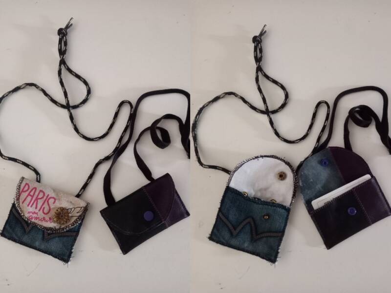 Des créations confectionnées avec ce qui se trouve dans mon atelier: chutes de tissus, chutes d'ourlets, vieux jeans récupérés…